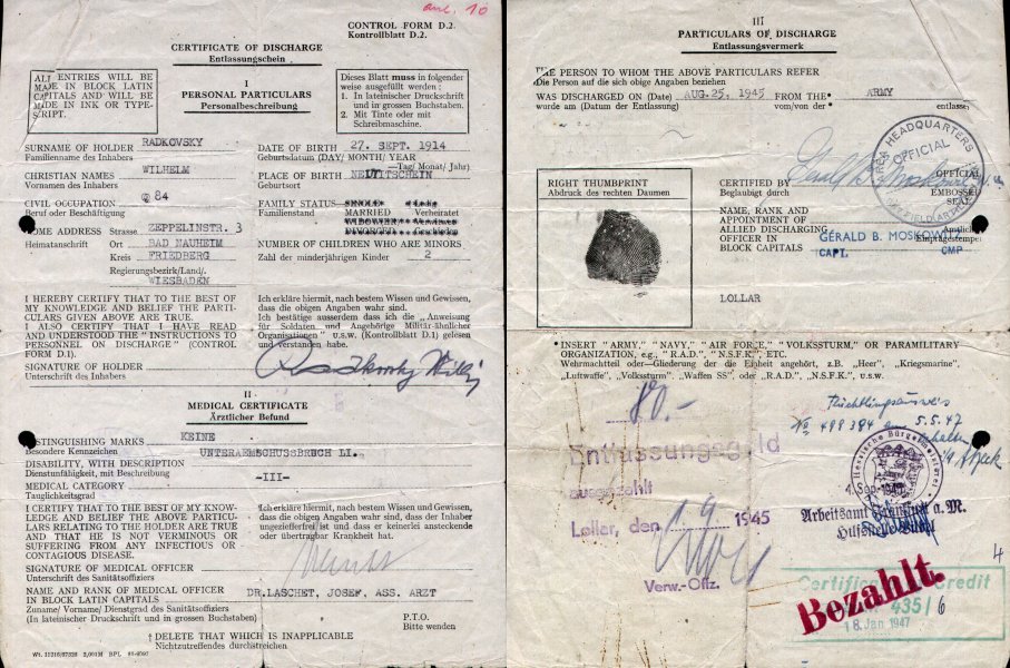 Entlassung aus der Wehrmacht am 25. August 1945.