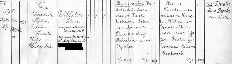 Geboren am 27. September 1914 in Neutitschein 1021; Eltern: Rudolf Radkovsky