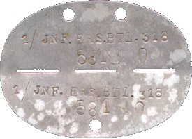 Eintritt in die Deutsche Wehrmacht am 1. März 1940 (Erkennungsmarke: -581- 1./I.E.B. 318).