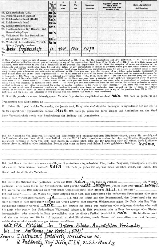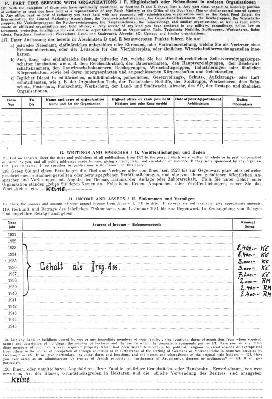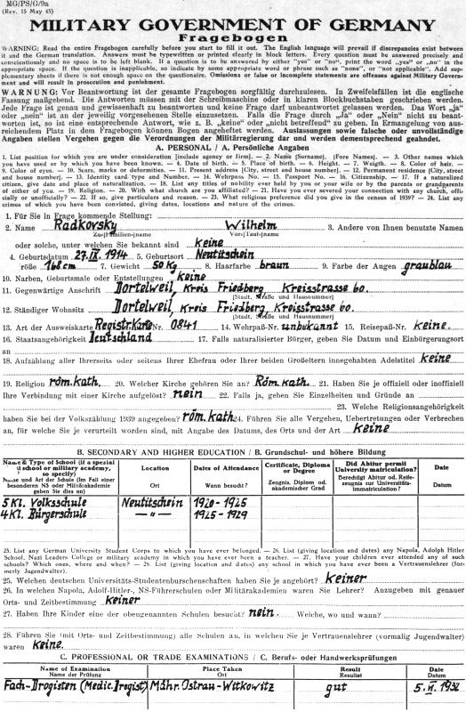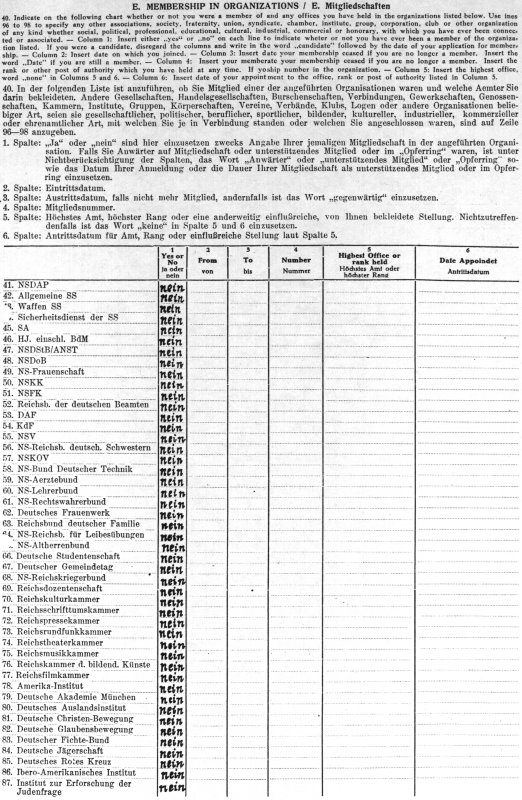 Fragebogen des Military Government of Germany (1, 2, 3, 4, 5, 6).