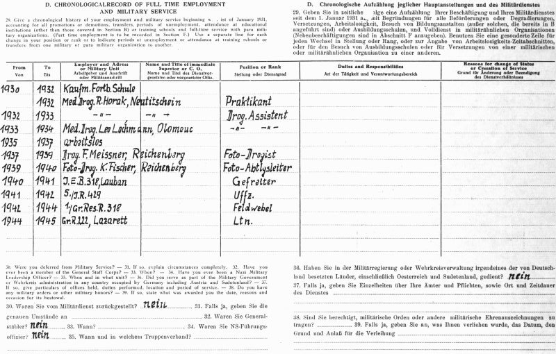 Foto-Abteilungsleiter in der Drogerie Karl Fischer in Reichenberg vom 1. April 1939 bis zum 28. Februar 1940.