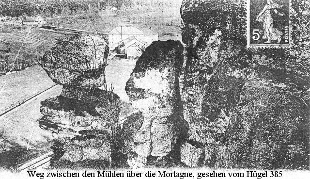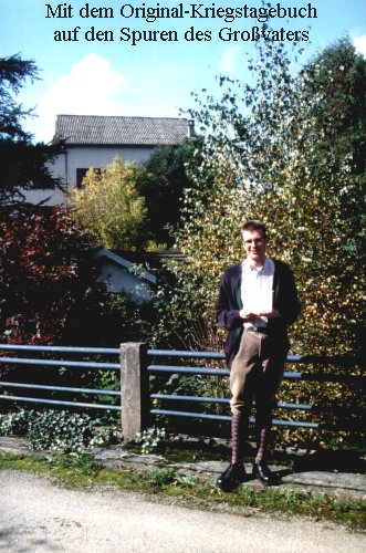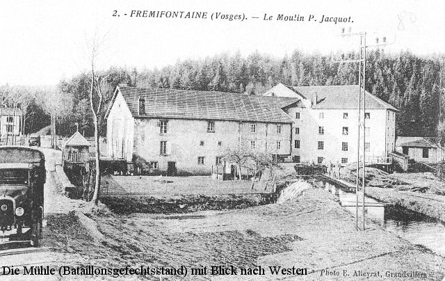 Wir standen vor der Mühle, in der damals der Bataillonsgefechtsstand meines Großvaters einquartiert war, besuchten Fremifontaine und fanden auch anhand der von ihm selbst gezeichneten Karte die Höhe 380, auf welcher er nur zwei Tage nach obiger Eintragung schwer verwundet wurde.