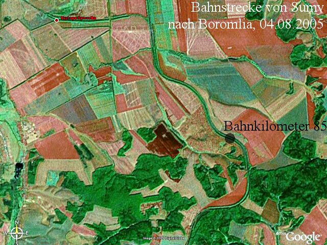 Für die Rückfahrt von Charkow nach Kiew nahmen wir nicht den direkten Weg wie bei der Hinfahrt, sondern fuhren über Sumy und Romny. Der Grund war, daß wir die Bahnlinie Sumy-Boromlia aufsuchten, genauer gesagt den Bahndamm am Haltepunkt 85, zu welchem mein Großvater am 11.10.1941 seinen ersten, sehr erfolgreichen Spähtrupp als Zugführer unternommen hatte.