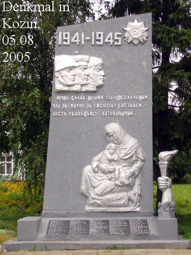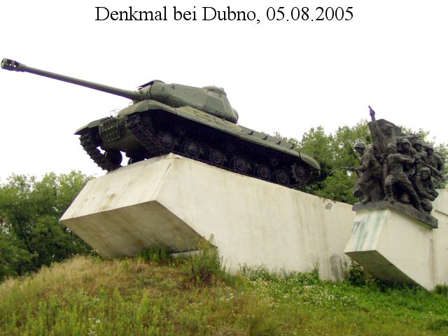 Am vorletzten Tag in der Ukraine fuhren wir von Kiew aus zurück nach Lemberg: Über Schitomir und Rowno gelangten wir nach Dubno. Hier erinnert ein Panzerdenkmal an die - nach Kursk - größte Panzerschlacht der Geschichte in den Wäldern bei Dubno-Werba-Kozin im Juni/Juli 1941, in die auch mein Großvater mit eingebunden war. Letzter Punkt an diesem Tag war Kozin, wo die gesamte Infanterie-Division meines Großvaters nur zwei Wochen nach Beginn des Rußlandfeldzuges schwerste Verluste durch einen massiven sowjetischen Panzerangriff erleiden mußte.