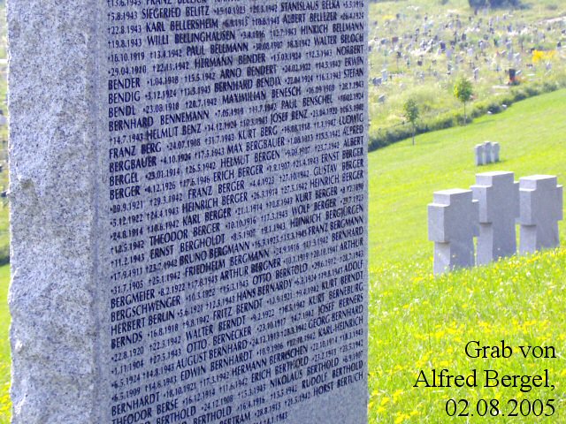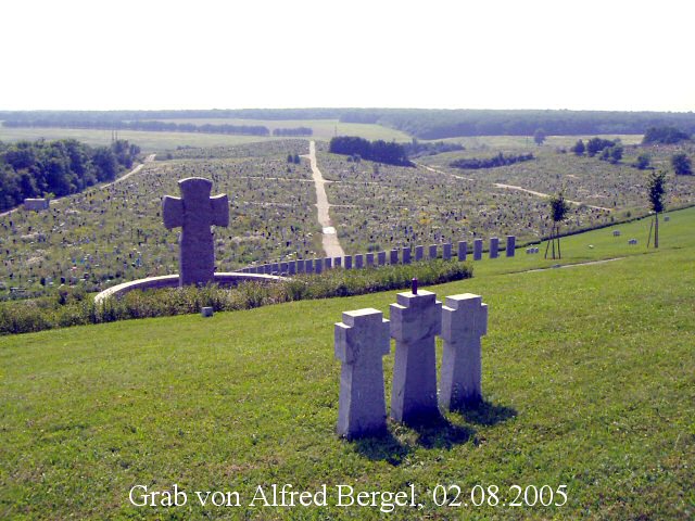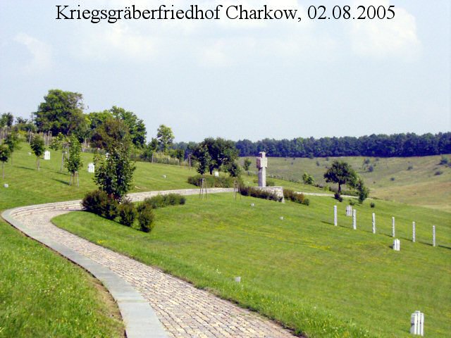 Am nächsten Tag verließen wir Kiew und begaben uns über Poltawa noch weiter nach Osten, bis nach Charkow. Hier besuchten wir den in einem fast 40 ha großen Friedhofsgelände recht versteckt gelegenen Kriegsgräberfriedhof des Volksbundes Deutsche Kriegsgräberfürsorge. Auch hier sind nicht nur mehrere Kameraden meines Großvaters bestattet, sondern auch mein Großonkel Unteroffizier Alfred Bergel (1914-1942) hat hier seine letzte Ruhestätte gefunden.