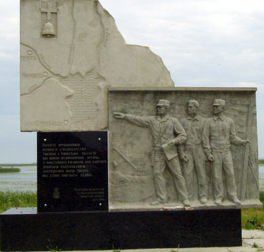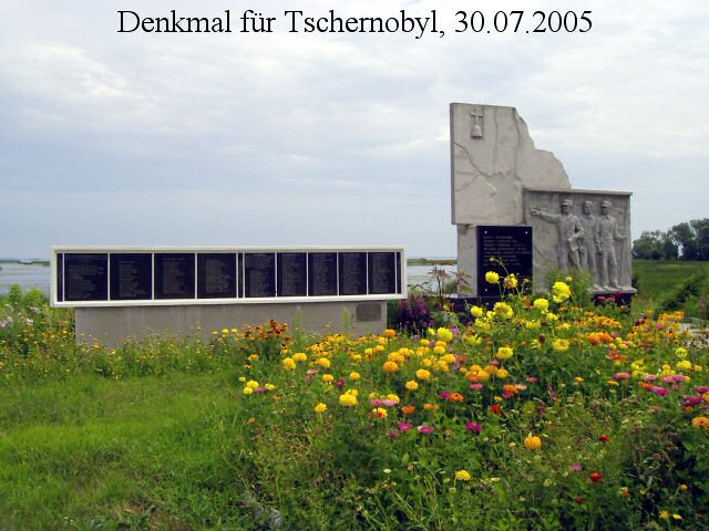 Heute befindet sich hier ein Denkmal für die bei der Katastrophe von Tschernobyl am 26.04.1986 eingesetzten und ums Leben gekommenen Rettungskräfte.