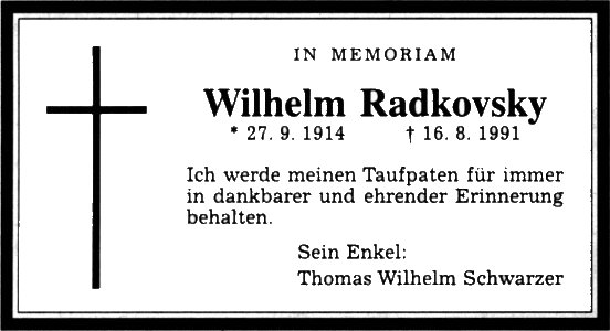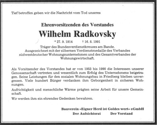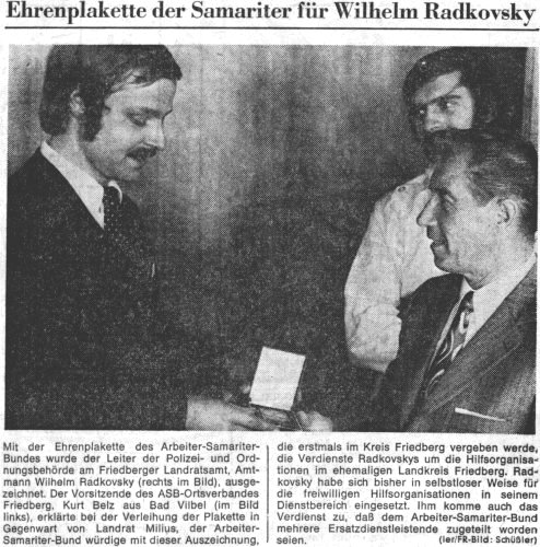 b) Ehrenplakette der Samariter für Wilhelm Radkovsky
